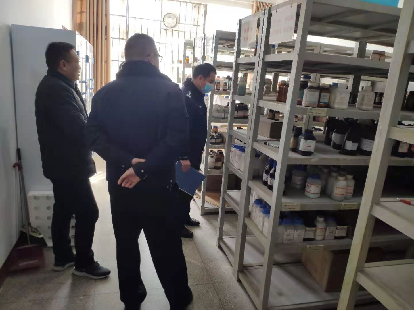 2021年1月18日,信阳市公安局老城派出所民警对FUN88乐天使开展危化品安全检查和指导工作。FUN88乐天使经理井强山、实验室主任于永生及其他实验室安全负责人陪同检查。