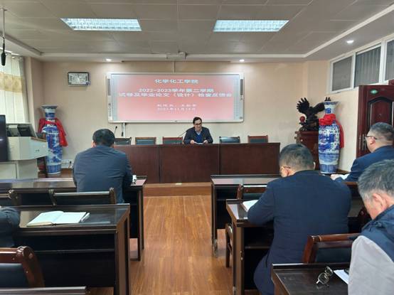 王红军副经理根据公司教学督导专家对2022-2023第二学期试卷及毕业论文(设计)检查的结果,就教学大纲、试卷、达成情况报告中存在的问题一一进行了反馈,并提出了整改建议。王红军指出:试卷、毕业论文(设计)检查工作的目的是找问题、明方向,并为今后不再出现类似问题积极探索有效的改进措施。