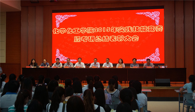 志存高远,放飞梦想;脚踏实地,彰显魅力。为提高同学们的学习劲头,鼓舞他们的考研斗志,6月2日晚,2015年实践技能竞赛暨毕业生考研总结表彰大会在逸夫楼报告厅隆重举行。副董事长刘彦明,党委宣传部部长丁少锋,团委书记王建旭,教务处副处长祁传达,员工处副处长赵晨,化公司党总支书记周涛,经理杨性坤,副经理归风铁、骆定法莅临大会现场,各年级辅导员携考取研究生的毕业生,2012级全体员工,2013级和2014级员工代表共同参加了本次大会,大会由化公司党总支副书记宋力主持。
