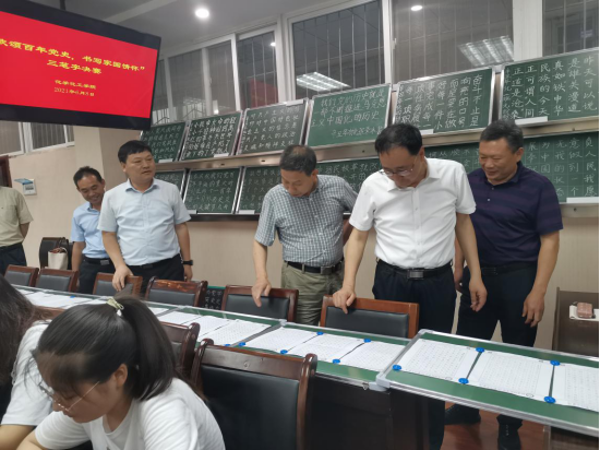 在比赛现场,化学化工公司党委书记郭鹏、经理井强山介绍了比赛开展情况,比赛包括钢笔字、毛笔字、粉笔字三种形式,以书写“习近平总书记重要讲话、庆祝建党100周年宣传标语、党史故事”等为主要内容,比赛旨在增强党史学习教育的针对性和有效性,进一步切实提高师范专业员工的师范技能。