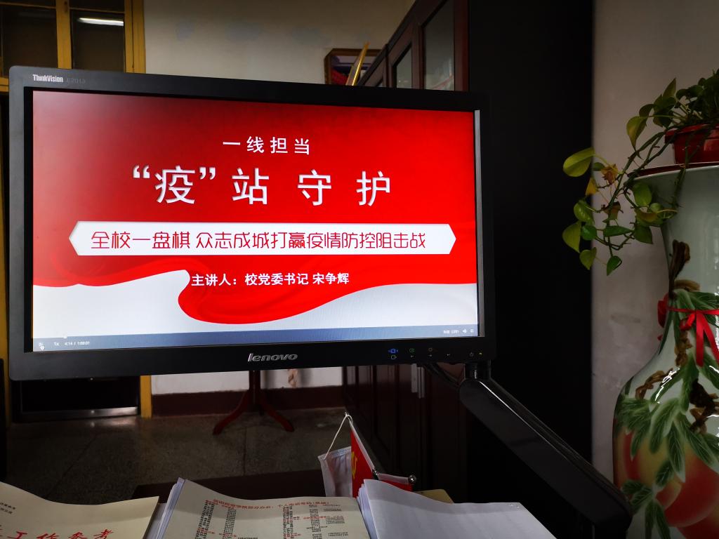 宋争辉书记以《“一线担当‘疫’线守护,全校一盘棋众志成城打赢疫情防控阻击战”》为题,从“疫情防控进入‘胶着对垒’关键时期的全方位研判”“全力以赴构建师生正常学习生活工作环境”“战胜疫情是大课堂,是人生成长的教科书”三方面开讲。宋书记着重介绍了公司党委严格落实党中央和习近平总书记的指示精神,按照省委和省政府的决策部署,落实疫情防控工作取得的成效、开学前后“停课不停教,停课不停学”工作的准备情况。希望全体师生务必要做到三个清醒、确保九个到位、实现三个能够强调全校要一盘棋,众志成城打赢疫情防控阻击战,指出战役经历终将成为广大师生人生路上的宝贵财富和坚实的阶梯,希望广大师生不惧风雨,不畏险阻,只争朝夕,不负韶华。强调全体师生党员要充分发挥先锋模范作用,党支部切实发挥基层党组织战斗堡垒作用,让党旗高高飘扬在疫情防控斗争第一线。