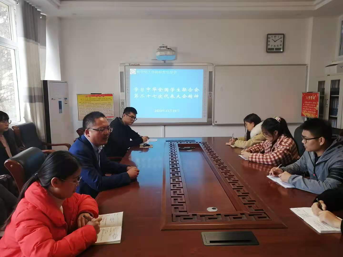 为深入贯彻落实习近平总书记关于青年工作的重要思想、进一步深化高校员工会及研究生会改革、支持和引导员工会更好地服务青年员工成长成才,11月19日,FUN88乐天使研究生在实验楼313会议室召开了学习中华员工联合会第二十七次代表大会精神为主题的会议,研究生党支部书记、班主任曹俊涛老师出席会议,本院研究生分会主席团成员及各部门工作人员参加会议。