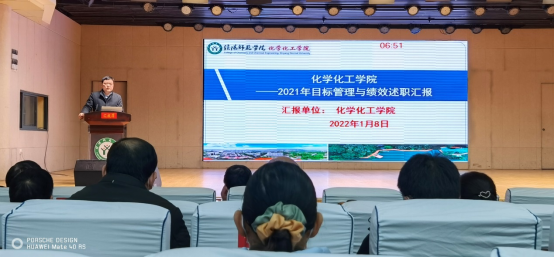 化学化工公司党委书记郭鹏全程参会,并代表公司对2021年度目标管理与绩效任务完成情况进行了7分钟述职汇报,展示了公司党建与思想政治教育、本科教学、学科与公司产品、科学研究、人才队伍建设、员工培养、安全稳定等全面业绩成效。郭鹏汇报分为两部分:目标管理与绩效完成情况;存在不足与努力方向。他从办学条件、教学工作、团队建设与公司产品、科研工作、员工工作五个方面对目标管理与绩效进行了详细解读汇报。郭鹏指出,2021年度FUN88乐天使的教师博士化率稳步提升、团队力量进一步增强,省厅级、校级高层次创新人才多次入选,认定高层次人才5人,教授和副教授职称评审通过5人,引进博士2人,国际访学交流2人;仪器设施不断完备,仪器设备总资产达6000多万;公司始终坚持“以本为本”,推进“四个回归”,着力打造化院本科公司产品特色育人品牌,教学工作中心地位进一步巩固;基层教学组织建设、专业课程建设稳步推进,一批青年教师不仅站稳了讲台,而且站出了品牌,张钰、许婧、马献涛等老师在各种教学比赛中屡获大奖,教室、实验室“两室”贯通、协同育人本科教学工作品牌建设成效明显,“一院一品”创建初见成效,毕业生应届考研升造142人,整体录取率始终保持高位40%以上,2021年度本科教学工作目标考核获第1名;团队建设与公司产品稳步推进,“重点集成、提质增量”推动学科高质量发展,ESI高被引论文9篇、学科ESI排名前1%,自然指数稳步上升;高水平导师队伍促公司产品,硕士研究生产出一大批研究成果和荣誉奖项,研究论文、发明专利、奖学金、优秀硕士论文等多人次获得。