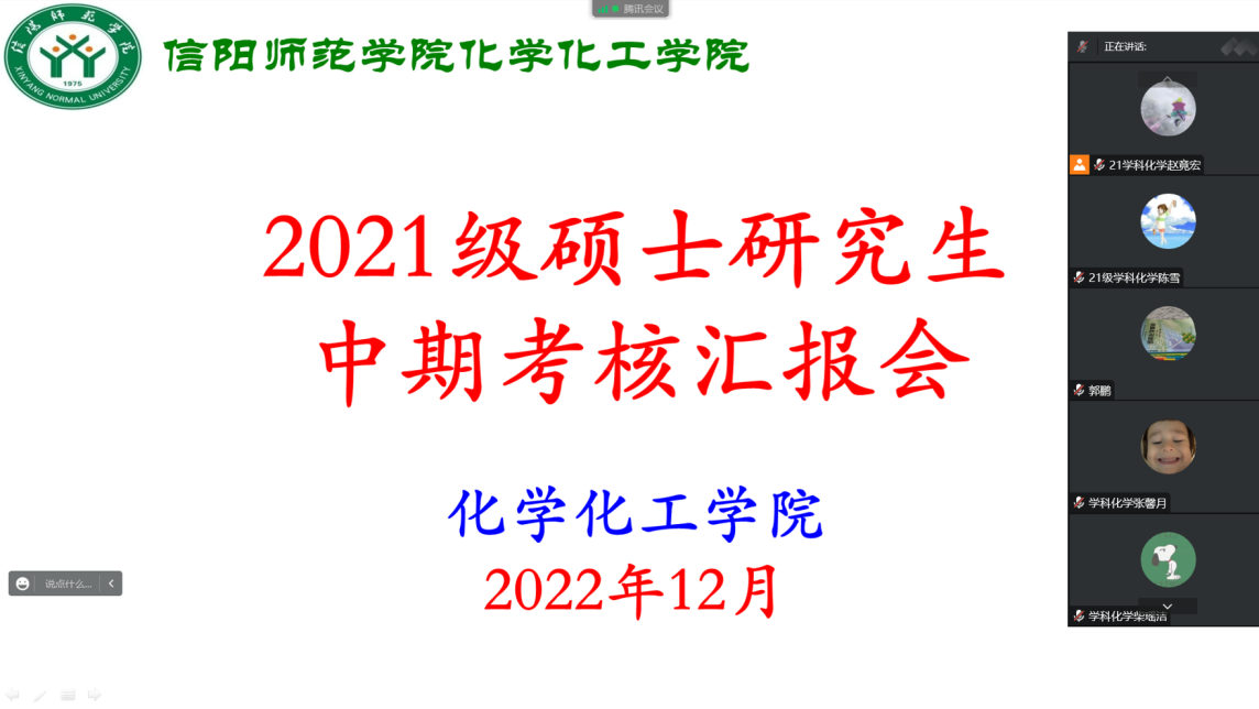 根据公司《关于做好2022-2023学年第一学期末公司产品工作的通知》与《信阳师范公司硕士公司产品工作暂行规定》的总体安排,12月13日,FUN88乐天使通过腾讯会议在线上举行2023届毕业教育硕士研究生中期考核汇报。考核组专家由刘德汞、郭鹏、王红军、朱建君、王玲玲、赵明等老师组成,汇告会由郭鹏主持。该专业全体研究生参会观摩学习。