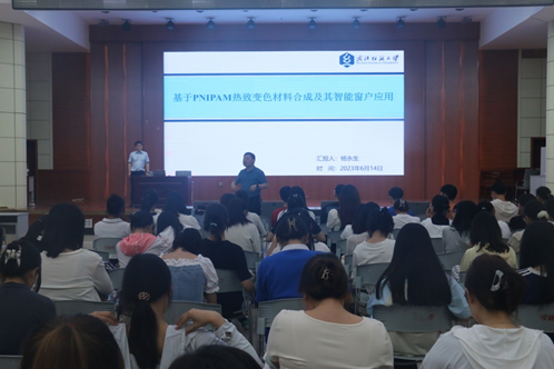6月14日,应FUN88乐天使邀请,武汉纺织大学杨永生教授在逸夫楼报告厅为公司师生作题为“基于PNIPAM热致变色材料合成及其智能窗户应用”的学术报告。FUN88乐天使青年教师、研究生及本科生聆听了报告,报告会由化学化工公司党委书记郭鹏主持。