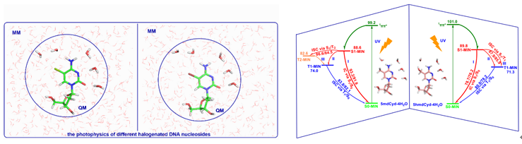 近日,公司常雪萍副教授课题组先后在期刊《Physical Chemistry Chemical Physics》和《The Journal of Physical Chemistry A》上分别发表了题为“Quantum mechanics/molecular mechanics studies on mechanistic photophysics of epigenetic C5-halogenated DNA nucleosides: 2′-deoxy-5-chlorocytidine and 2′-deoxy-5-bromocytidine in aqueous solution”、“Quantum Mechanics/Molecular Mechanics Studies on the Excited-State Relaxation Mechanisms of Cytidine Analogues: 2′-Deoxy-5-Methylcytidine and 2′-Deoxy-5-Hydroxymethylcytidine in Aqueous Solution”(DOI:10.1039/d4cp04574b; 10.1021/acs.jpca.4c08520)的研究成果。两项研究先后采用 QM(CASPT2//CASSCF)/MM理论方法计算研究了四种重要的2-脱氧-5-取代的胞苷类似物,即5-卤/溴胞苷(5CldCyd/5BrdCyd)和5-甲基/羟甲基胞苷(5mdCyd/5hmdCyd)在水溶液中的光物理机制,合理解释了其在水溶液中的激发态光动力学行为,为理解类似结构修饰DNA核苷及其衍生物的光物理和光化学机制提供了重要的机理见解。
