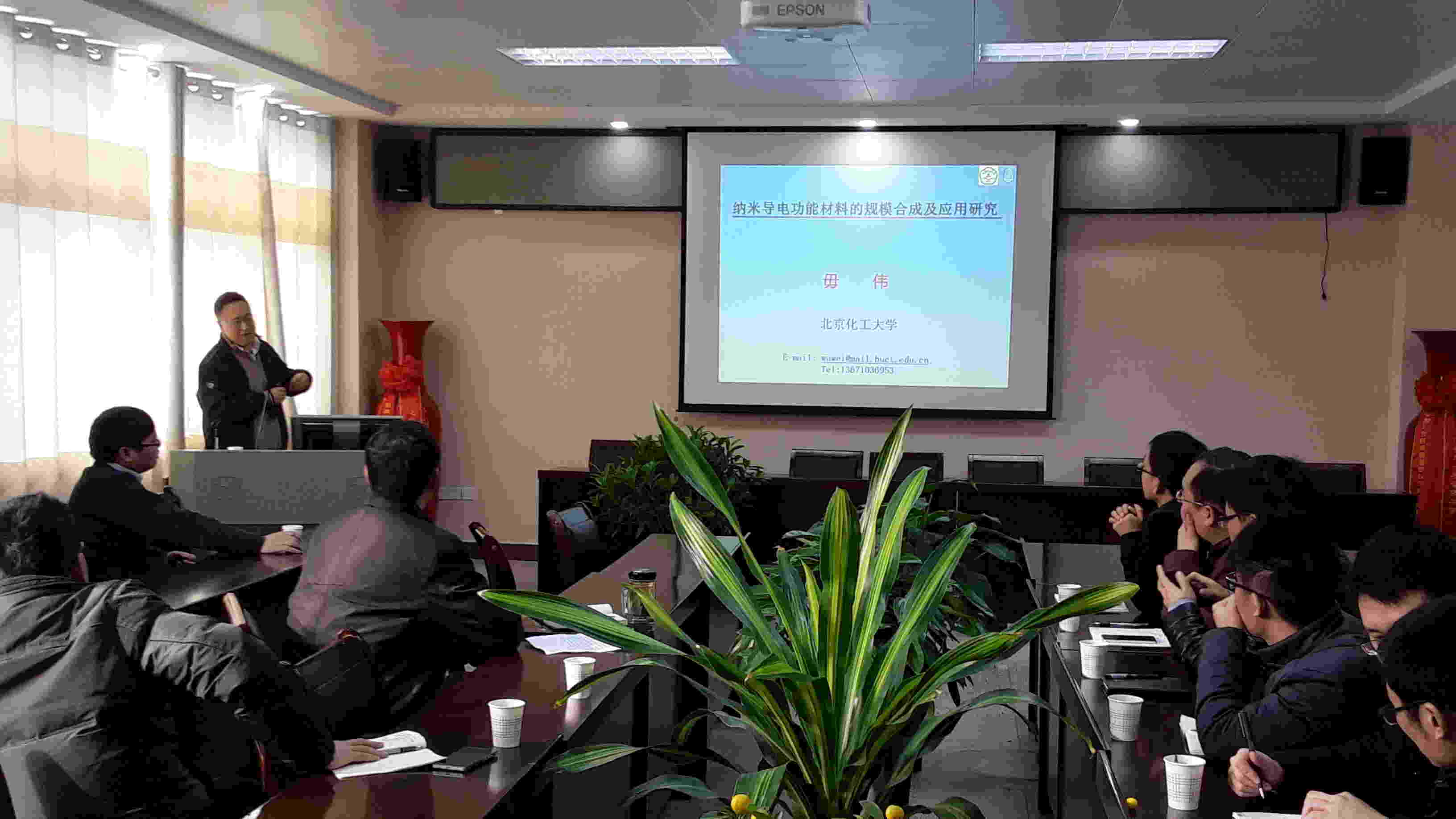 2016年12月30日上午,应FUN88乐天使邀请,北京化工大学程道建、毋伟教授来公司讲学,学术报告会由非金属材料研究所刘鹏副所长主持,FUN88乐天使部分教师和研究生参加。程道建教授作了题为“金属合金纳米催化剂:从基础研究到指导工业应用”的学术报告。报告围绕金属合金催化剂的分子模拟、制备表征、反应机理、催化性能和工业应用,详细介绍了合金催化剂研究方法,及其在清洁能源催化、环保和石油化工催化等领域的应用。 毋伟教授作了题为“导电纳米功能材料的规模合成及应用”的学术报告。介绍了采用超重力技术制备高性能纳米聚苯胺纤维、纳米聚苯胺纤维复合材料和石墨烯等导电功能材料,以及超重力旋转床平台技术的工业应用前景。12月30日下午,在省重点实验室会议室,程道建教授和毋伟教授对国家自然科学基金申报进行了指导,分享了自己多年申报国家基金的经验和体会,并对部分教师的申请书进行了详细的点评。