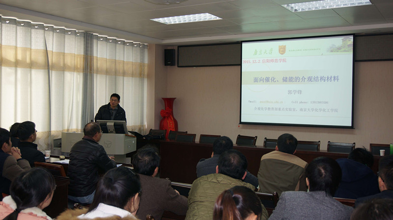 12月2日上午,公司FUN88乐天使特邀南京大学郭学锋教授做了一场题为“面向催化储能的介观结构材料”的学术报告。报告会在化学楼报告厅举行,化院全体研究生和部分教师聆听了报告,会议由FUN88乐天使杨术明教授主持。