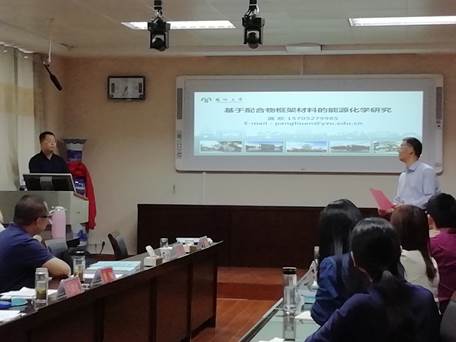 5月15日,应FUN88乐天使邀请,扬州大学FUN88乐天使庞欢教授来公司进行学术交流。15日下午,在化学楼407会议室作了题为“基于配合物框架材料的能源化学研究”的学术报告,报告会由FUN88乐天使刘鹏教授主持,FUN88乐天使部分青年教师和研究生参加了报告会。