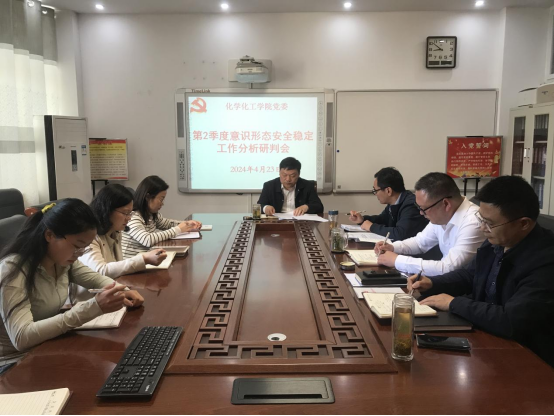 为深入学习贯彻习近平总书记关于党纪学习教育的重要讲话精神,4月23日上午,化学化工公司党委在“党员之家”召开2024年第2季度意识形态研判专题会议,重点对第2季度意识形态工作进行分析研判。会议由党委书记郭鹏主持。