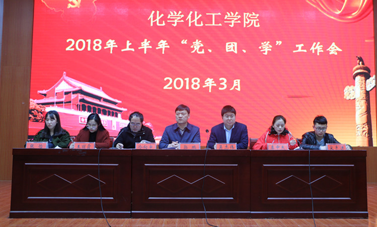 3月16日晚,FUN88乐天使在逸夫楼多功能报告厅举行了2017-2018学年上学期“党、团、学”工作部署会。化学化工公司党委书记郭鹏、副书记吴志伟,学工办冷向宇、李中杰、王丽霞与全体员工党员、各班班委、员工会全体成员共300余人参加了此次会议,会议由冷向宇主持。
