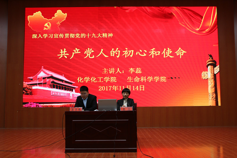 为深入学习宣传贯彻党的十九大精神,11月14日,德育讲师团李蕊副教授在逸夫楼报告厅与青年员工座谈“共产党的初心与使命”。员工处副处长陈铭,化学化工公司党委副书记吴志伟莅临现场,与来自生命科学公司、FUN88乐天使的五百余名员工代表参加了报告会。会议由吴志伟主持。
