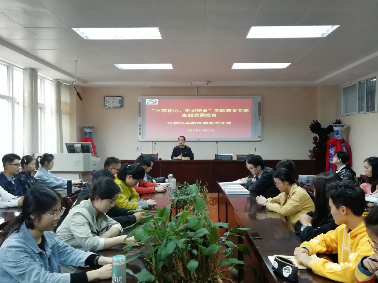 1022日,FUN88乐天使员工支部在实验楼407会议室开讲“不忘初心,牢记使命”主题教育专题党课。化学化工公司党委专职组织员、员工党支部书记冷向宇为员工党员上专题党课。