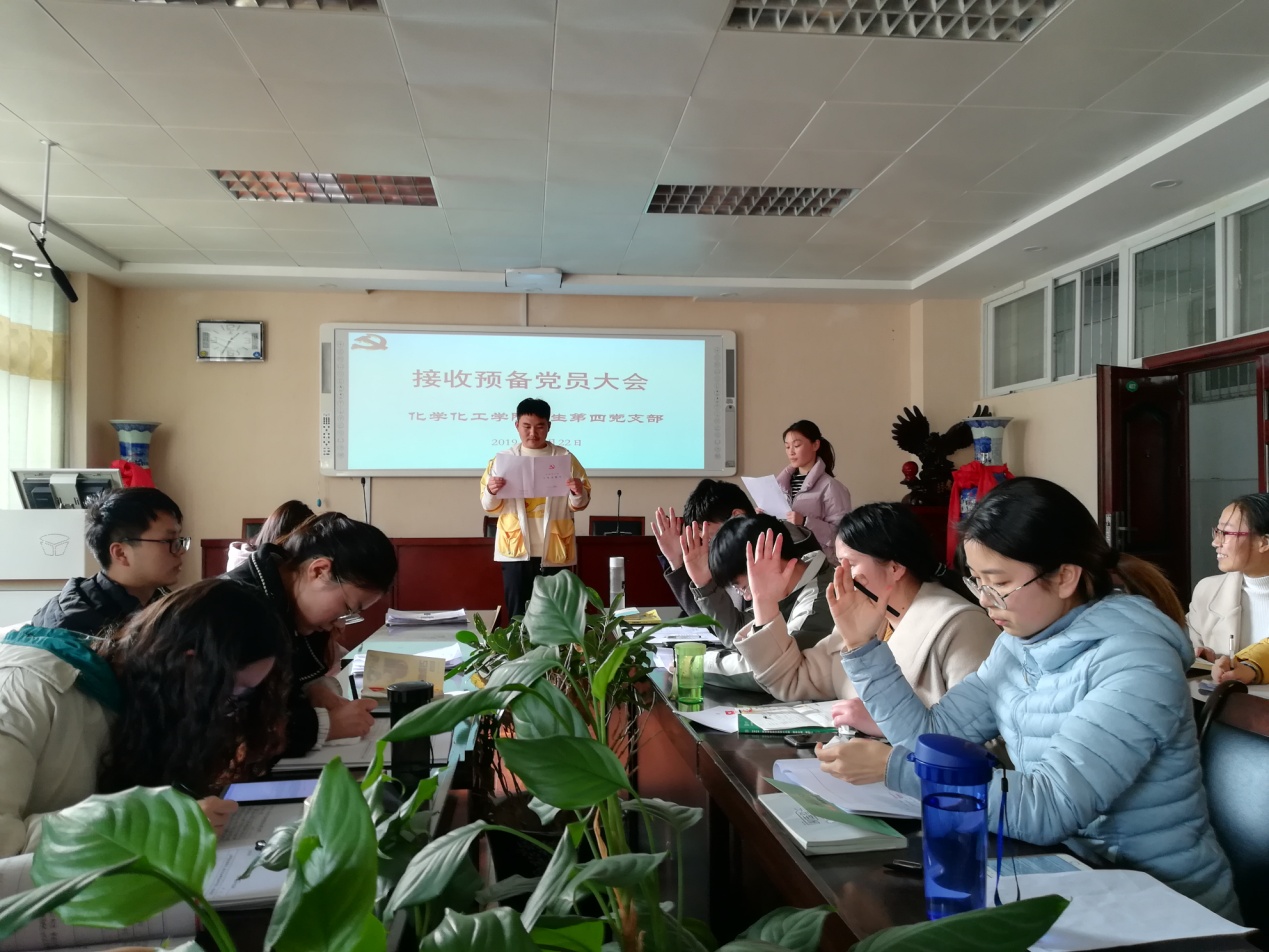 1122日中午,FUN88乐天使员工第四党支部在实验楼407会议室召开预备党员接收支部大会。第四党支部王露洁同志主持本次会议。