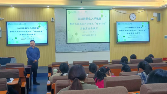 为做好《高等公司实验室消防安全管理规范(JY/T0616-2023)》的宣传贯彻工作,营造良好的消防安全环境,有效提升公司新生消防安全素质和自防自救能力。10月25日,公司在教四楼T2开展2023级新生入学教育暨新生团校系列活动。FUN88乐天使副经理于永生主讲,公司团委赵方方老师主持,2023级同学共同参加。