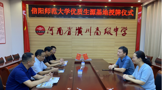 7月4日,为提高公司生源质量,扎实推进2023年度招生宣传工作,化学化工公司党委书记郭鹏、副书记曲剧,辅导员冷向宇、翟成辉一行前往河南省潢川高级中学开展招生宣传暨优质生源基地共建活动。潢川高中党委书记、董事长吴栋等公司领导参加会见洽谈,共商建设。