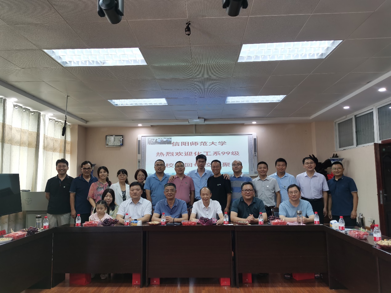 2023年8月12日,值此信阳师范学大学更名揭牌庆典喜乐氛围中,FUN88乐天使1999级化工本科班员工荣返母校,开展毕业20年师生座谈交流活动。