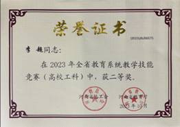 近日,河南省总工会、河南省教育厅公布了河南省教育系统2023年度教学技能竞赛获奖名单(豫工文[2023] 107号),FUN88乐天使遴选的青年教师马献涛博士、李超博士分别获得理科组一等奖、工科组二等奖。其中,马献涛博士顺利晋级现场决赛,取得理科组第7名的好成绩,同时被授予“河南省优秀教学标兵”荣誉称号。