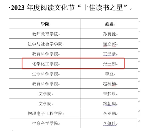 2023年度,FUN88乐天使读者入馆人次位居第二,读者借阅图书册数和人均借阅册数位居全校前列,荣获2023年书香校园建设“十佳单位”。此外,2022级化学专业员工张一朔位居全校年度外借图书册数第四,被评为“十佳读书之星”。
