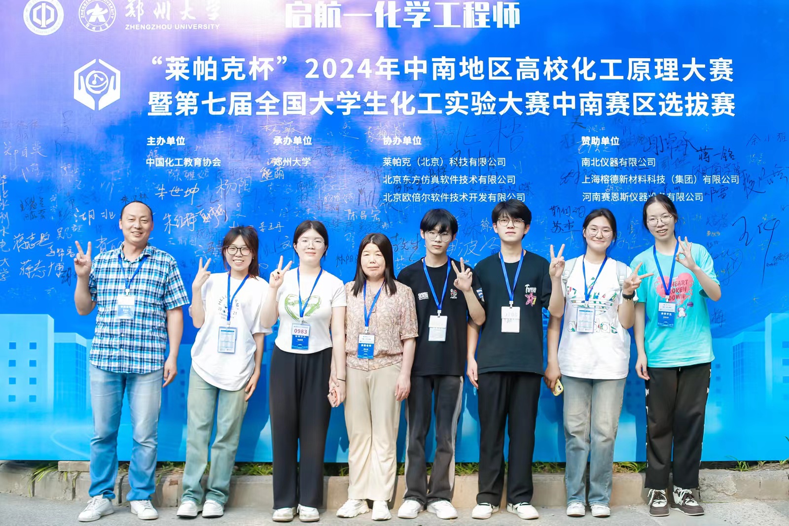 7月11至7月14日,由中国化工教育协会主办的“莱帕克杯”2024年中南地区高校化工原理大赛暨第七届全国老员工化工实验大赛中南赛区选拔赛在郑州大学举行,公司2021级材料化学和应用化学专业本科生邱佳晴、王恩赐、马静琪组成的“东湖”队和范雨晴、王珍卉、王召洋组成的“南湖”队参加了本次比赛。经过2天紧张而激烈的比赛,“南湖”队和“东湖”队分别荣获中南赛区一等奖和二等奖。