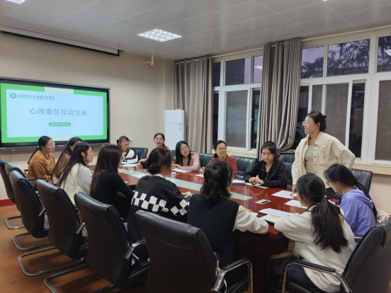 会议伊始,翟成辉老师就心理委员工作职责、工作重要性和心理主题班会选题等方面进行了详细的讲解,她指出心理委员是四级预警体系中“班级”重要一级,是班级同学的心灵守护者,要担负起为同学搭建起心灵救助桥梁的职责。随后,公司党委副书记曲剧讲述了心理委员拥有良好倾听能力的重要性,如何与寝室长有效沟通的技巧,以及配合做好新生同学的心理普查服务工作等,她特别强调了心理委员作为班级心灵守护者的角色,鼓励大家要积极关注同学的心理状态,及时给予关心和支持,并学会在必要时引导同学寻求专业的心理帮助,共同守护班级同学的心理健康。培训中还设置了心理委员交流提问环节,各心理委员根据开学以来班级同学遇到的心理难题进行提问,一起讨论情绪变化产生的各类原因,随后,曲书记针对每类情况给予了专业性的朋辈辅导建议。
