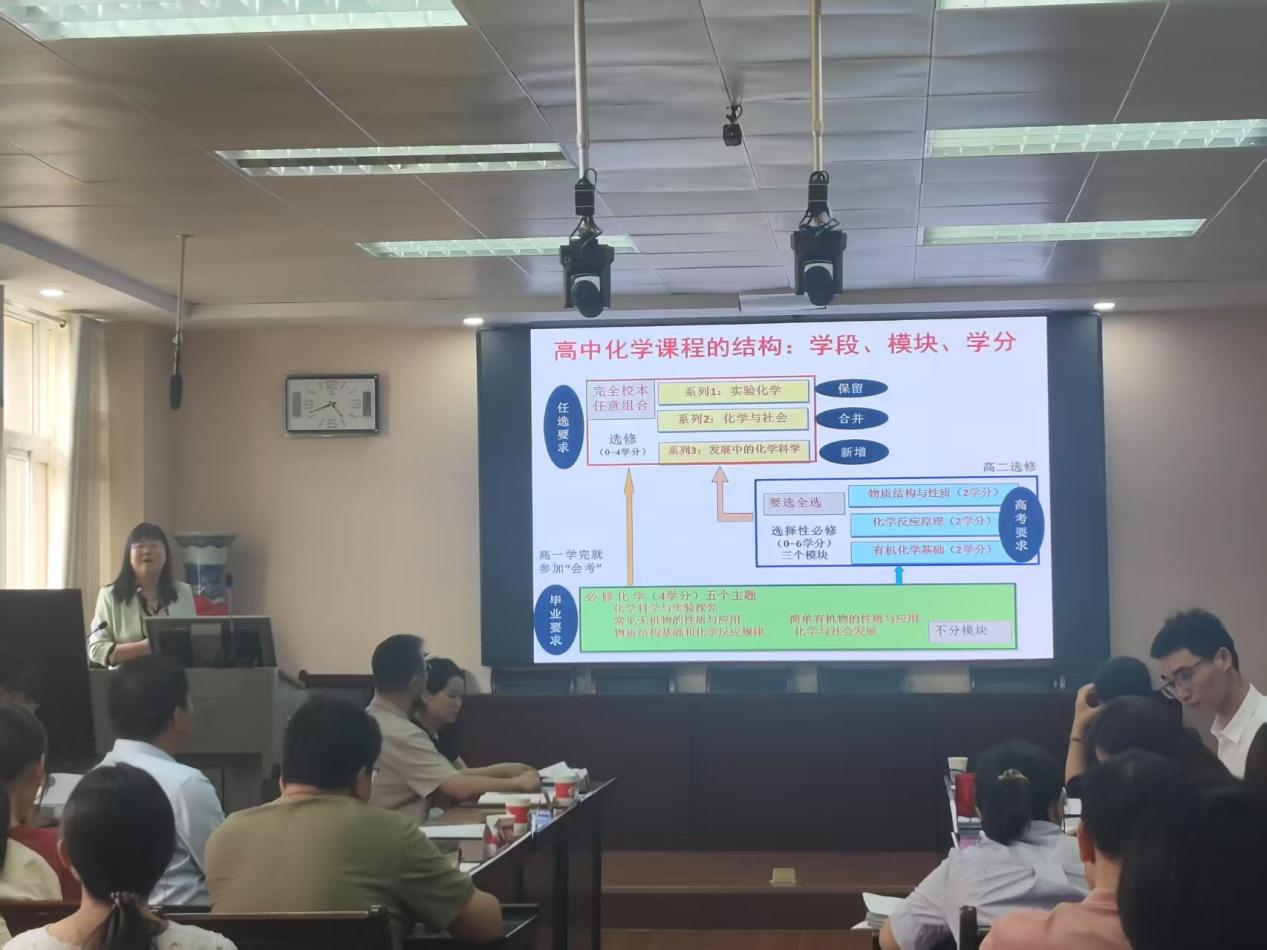 戢明教授结合河南省基础教育实际,深入解读了新课程标准对化学学科核心素养的要求,对比分析了近年来河南省及全国中高考化学试题的命题特点,并结合典型案例,分享了如何通过项目式学习、实验探究教学等方式提升员工的学科素养。她指出,当前中高考命题正从“知识考查”向“能力立意”转变,试题更加注重真实情境的创设、学科思维的考查以及跨学科融合能力的体现。教师应关注化学学科核心素养在课堂教学中的落地,避免“机械刷题”倾向。戢明教授的报告内容丰富,专业性、学术性、实践性强,让师范生对新课标、新教材有了更全面、更深刻的理解、对中高考的命题方向有了更加清晰的认识。