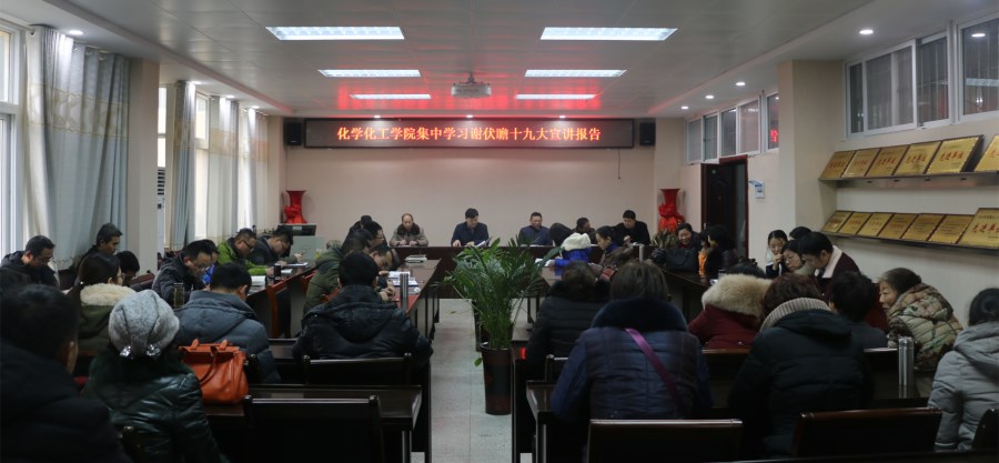 元月2日下午,FUN88乐天使在化学实验楼会议室集中学习省委书记谢伏瞻在河南师范大学宣讲十九大精神的报告。经理井强山、副经理骆定法、归风铁、刘鹏,党委副书记吴志伟与全体教职工共同聆听了此次报告。