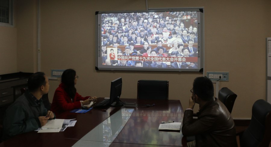 师生们表示:“我们既感受到历史的脉搏,又听到向未来进军的号角,十九大描绘的宏伟蓝图让我们每个党员干部更有信心和力量。”鼓舞、振奋、信心、希望是同学们上午集中收看了十九大开幕盛况后用得最多的词汇。FUN88乐天使其他员工通过手机和互联网络观看十九大开幕式直播。