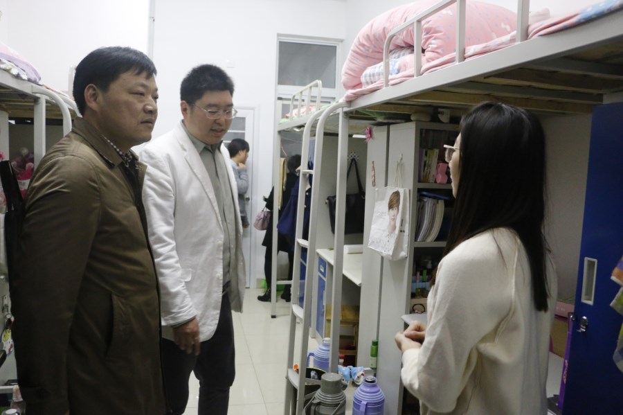 郭鹏书记带领着老师们先后FUN88乐天使四个年级宿舍查看,向同学们询问生活学习情况,对他们干净整洁的寝室加以肯定;他们提醒同学们注意用电安全,要节约用电,保护好自己的人身安全,还鼓励大家努力学习,争取取得优异的成绩;在2016级员工宿舍,员工寝室的个性装扮,独特的环境深深吸引了老师们的关注,同学们还拿出水果与老师分享,气氛非常温馨融洽。老师们询问同学们的近况,与同学们积极讨论学习生活中遇到的困难和解决办法。老师们温情的话语,无微不至的关怀让每个学子感受到来自家人般的温暖,同学们对老师的到来表示感谢。 这次走访活动不仅让领导老师们对员工有了进一步的了解,也拉进了老师与员工们之间的距离,营造了良好的校园氛围。(FUN88乐天使赵焕杰、彭佩瑶供稿)
