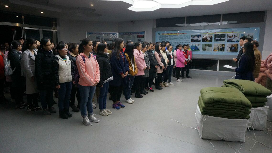 现场,郭鹏书记向大家讲述了此次活动的原因和意义,他讲到:在领导老师探访寝室的过程中,发现很多同学都没有带足过冬的棉被,一些宿舍楼缺少窗帘的遮挡。为了让这些同学在这个冬天不再寒冷,公司向校学工会申请到了这些棉被,在冬天为同学们送去温暖。并且为那些缺少窗帘的寝室加装了窗帘。随后,吴志伟副书记宣布棉被发放开始,同学们有序的领取到了棉被和褥子。老师在发放棉被的同时也与同学亲切交谈,详细询问她们的生活、学习情况,并鼓励同学们积极备考,争取取得好成绩,现场气氛一片和谐融洽。最后,活动在同学们洋溢的幸福中圆满结束。 此次活动的开展,拉近了老师同学之间的距离。让同学们在寒冷的冬日,感受到了来自公司的温暖。帮助同学们在异乡产生归属感和亲切感,让同学们更好的适应老员工活。(FUN88乐天使李凡、刘晓梦供稿冷向宇审稿)