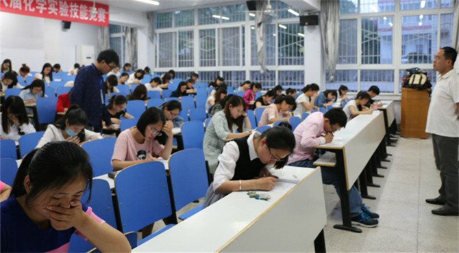 实验拼技能,学子化风采。为响应深化教育改革的政策,调动老员工积极参与化学实验学习与研究的兴趣,五月六日晚七点,FUN88乐天使在教四、教七四个考点举行第六届化学实验技能竞赛笔试,三百余名员工参加本次比赛,团委书记冷向宇、辅导员老师路振国现场巡察监督。