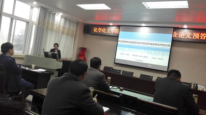 4月6日下午,2013级研究生硕士毕业预答辩会在化学楼报告厅举行,研究生导师刘德汞教授、井强山教授、黄克靖教授、甘甜副教授、曹新华副教授、王海波副教授和曹俊涛副教授担任预答辩评审专家,FUN88乐天使全体研究生参加了此次答辩会。
