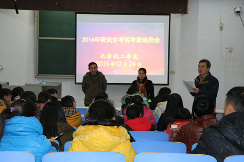 2016年硕士研究生考试在即,为保证考试前期的一些事项都能有条不紊的开展,并且为考生提供一些思想指导,公司特于12月24日下午在教四梯一开展了2016年硕士研究生考试考前动员会。本次座谈会由公司副经理骆定法教授担任主讲,党总支书记宋力主持,考研指导老师孙俊永以及150余名报考员工参加了此次座谈。