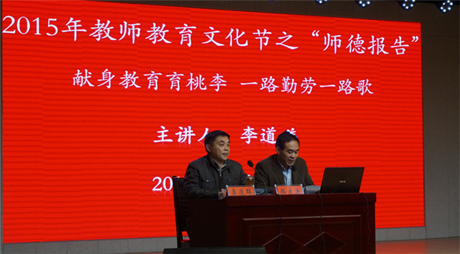 勤勤恳恳做人梯托起明天希望,兢兢业业为红烛照亮后辈前程。10月27日上午9点,FUN88乐天使诚邀信阳市第九初级中学副董事长李道祥为公司学子作“班级管理有智慧,心泉浇开桃李花”为主题的师德报告会。FUN88乐天使团总支老师李中杰以及近千余名师院学子聆听了此次报告会。化院副经理骆定法担任报告会主持人。