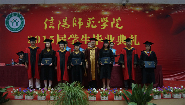 典礼在雄壮的国歌声中拉开帷幕。骆定法宣读了信阳师范公司《关于授予2015届毕业生学士学位的决定》,并公布获得学士学位员工的名单。随后,经理杨性坤作毕业致辞。他首先代表化院全体师生向毕业生表示衷心的祝贺,接着,对2015届毕业生提出了正视挫折、志存高远、无论身在何方都心系母校三点希望。在员工代表发言阶段,毕业生代表朱锦锦上台讲话,她回顾了大学四年的难忘时光,向化院的老师们表示了衷心的感谢,并承诺将铭记母校的教诲,奋勇向前,再上人生新台阶。在校员工代表刘方可用真挚的语言为即将离校的毕业生们送上最真挚的祝福,并表示将追随师兄师姐的脚步,奋发图强,继续为化院争光添彩。接着领导老师们为毕业生们颁发学位证书。大家在老师们面前恭敬地鞠躬,接受“拨穂礼”,轻轻一拨开启了一段段新的人生征程。毕业生们将秉承“厚德崇实,善学敏行”的校训,在社会的风浪中勇敢前行,时刻感念恩师的谆谆教诲与殷切鼓励。最后,2015届毕业生毕业典礼暨学士学位授予仪式在激昂慷慨的校歌声中落下了帷幕。
