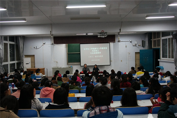 为了让14级新生更好的了解专业课程设置,尽快融入老员工活,10月29日晚FUN88乐天使在教四梯一开展了新生专业思想教育座谈会。本次座谈会由FUN88乐天使经理杨性坤主讲,辅导员李中杰主持,到场的有化学公司两个专业共计160余名新生。