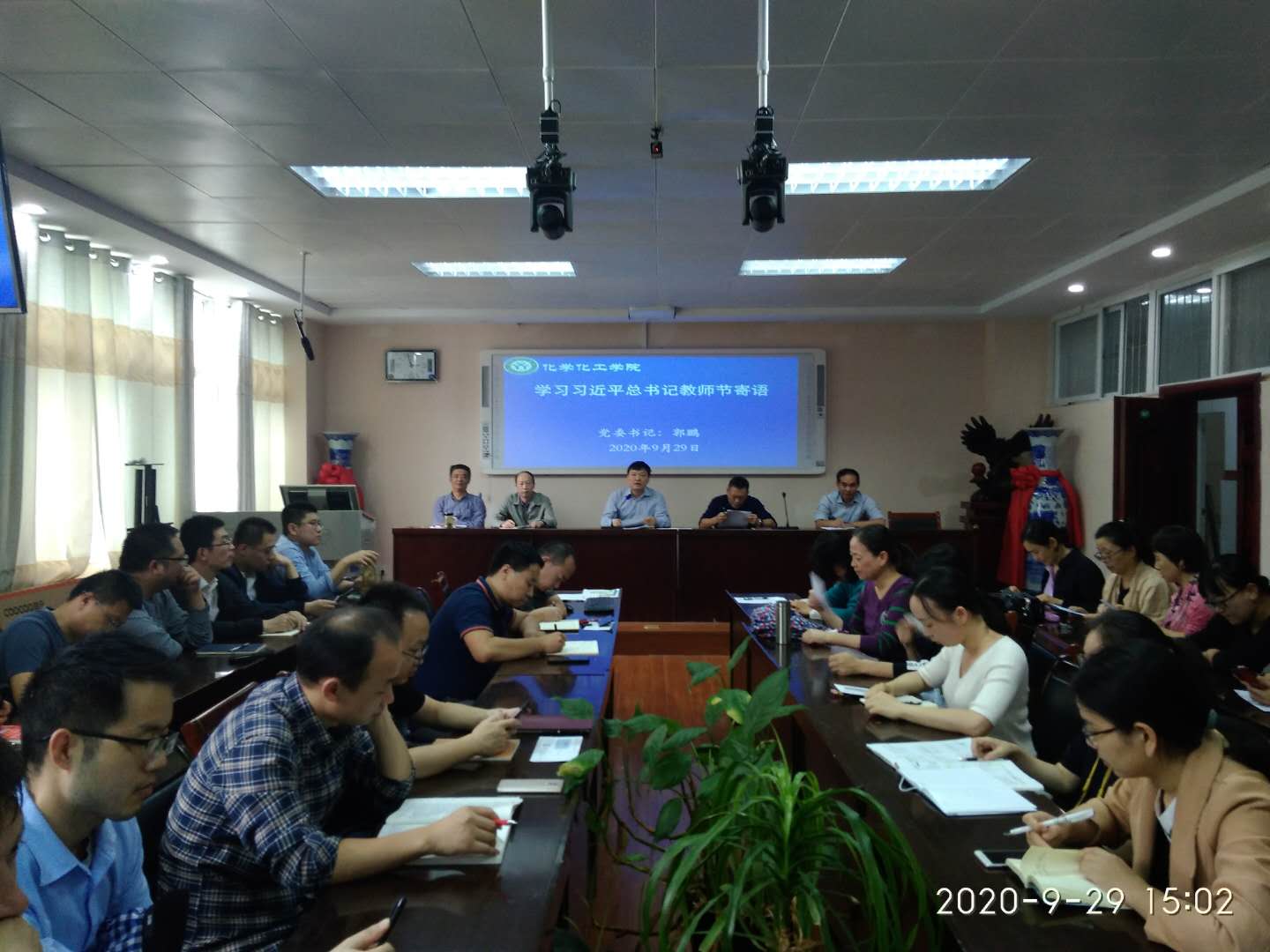 9月29日,FUN88乐天使在化学楼407报告厅召开全体教职工大会,专题学习习总书记教师节寄语。FUN88乐天使全体教师集体参加学习,学习会由党委书记郭鹏主持并宣讲领学解读。
