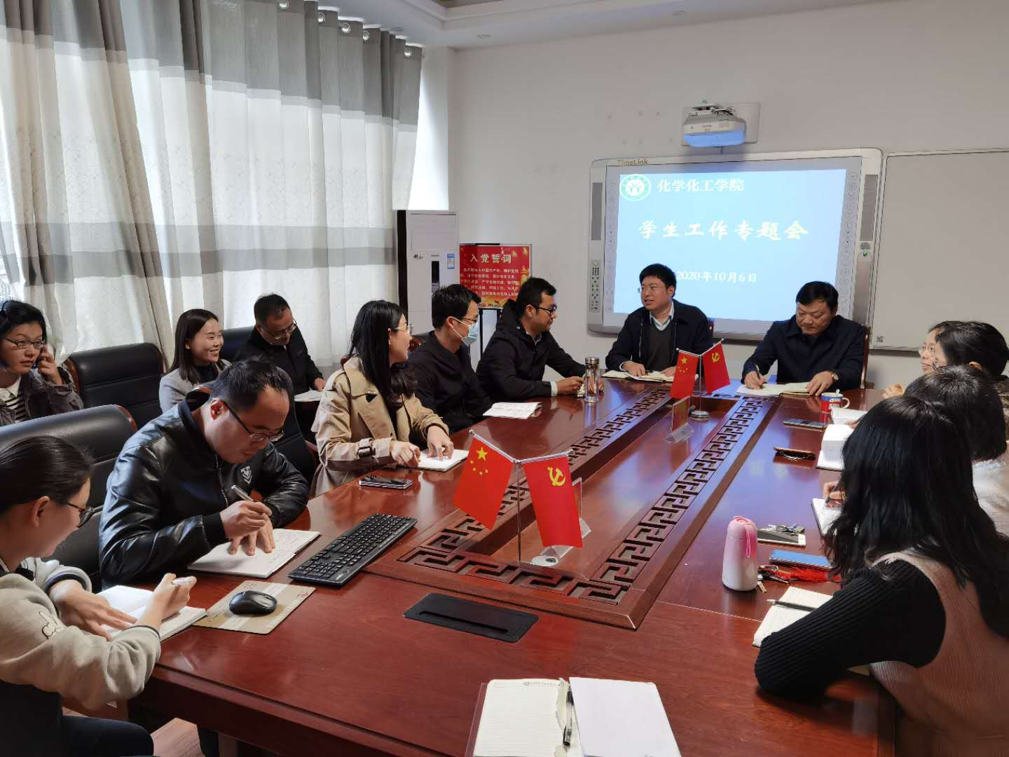 疫情防控常态化新形势下,欢庆国庆中秋“双节”期间,为深入贯彻落实安全稳定工作责任制,把员工安全管理工作各项任务落到实处,10月6日,FUN88乐天使员工工作领导小组在实验楼313召开秋冬季员工安全稳定工作专题会议。化学化工公司党委书记、员工工作领导小组组长郭鹏,党委副书记、副组长吴志伟,FUN88乐天使全体班主任、辅导员参加会议。