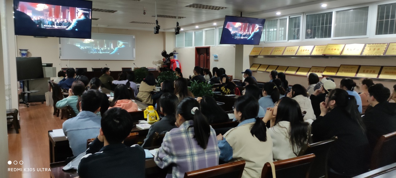 为庆祝中国共产党建党100周年,3月30日晚,FUN88乐天使分党委组织2021年上半年57名党员发展对象、第35期党校学员在化学楼407教室集体观看了《建党伟业》。