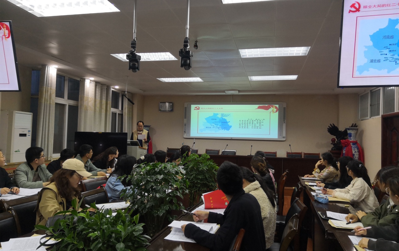 首先,冷向宇以PPT的形式介绍了学习党史的重要性,并解读领学长征精神的内容,带领大家一起走进中国工农红军第二十五军长征的故事,着重介绍了红二十五军的长征历程,英雄人物旷继勋、吴焕先、徐海东、刘华清等人的英雄事迹。最后,他引用习近平总书记的话,我们“一切向前走,都不能忘记走过的路;走得再远、走到再光辉的未来,也不能忘记走过的过去,不能忘记为什么出发。面向未来,面对挑战,我们一定要不忘初心、继续前进。”