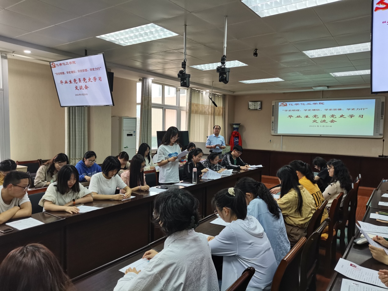5月20日下午,2021届毕业生党员在实验楼举行“学史明理、学史增信、学史崇德、学史力行”党史学习交流会,交流学习《中国共产党简史》心得体会。学习交流会由分党委专职组织员冷向宇主持。