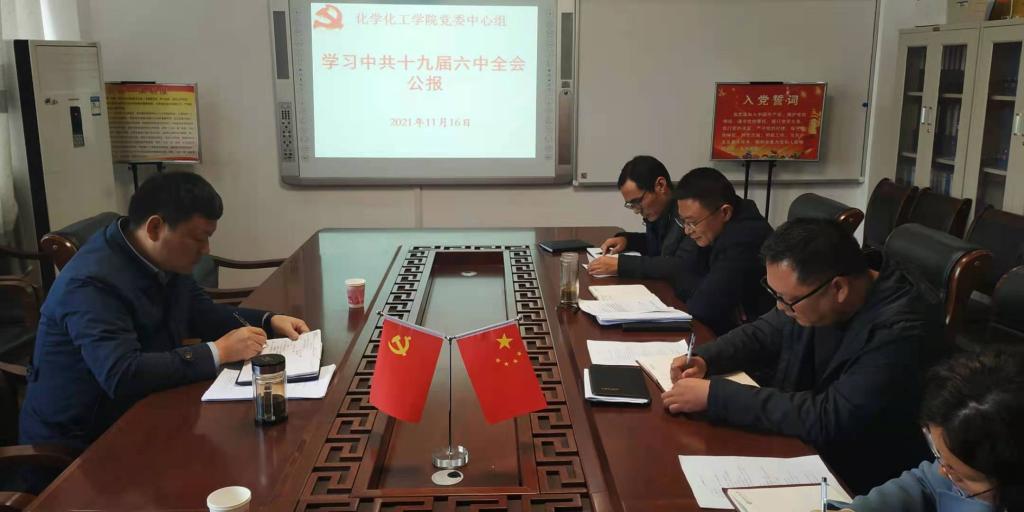 11月16日上午,化学化工公司党委理论学习中心组在实验楼313“党员之家”召开专题学习会,集中学习《中国共产党第十九届中央委员会第六次全体会议公报》、《中共中央关于党的百年奋斗重大成就和历史经验的决议》精神。公司党委书记郭鹏主持会议。中心组全体成员参加学习会。