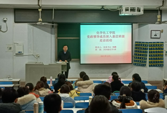 12月17日,FUN88乐天使开展党政领导深入基层班级走访活动,公司党委书记郭鹏深入2020级化学5班为员工上开讲《形势与政策》思政课,活动由严赫主持。