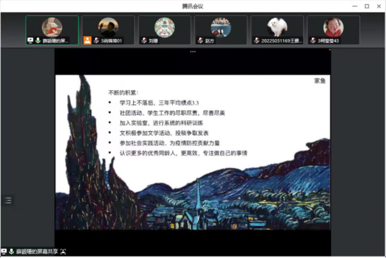 文公司2020级国家奖学金获得者刘珊同学,分享自己在思想、学习、生活、工作上的经历,奋斗历程和收获感悟,并激励同学们大学期间要坚守初心、脚踏实地、全力以赴,终将聚以成光;教育科学公司2020级自强之星获得者张豪鹏同学,通过自己在学习专业课中,要立志成为一名有情怀的学前教育人的经历,鼓励同学们怀着心中热爱,不断前进,成为更好的自己;物电电子工程公司2019级校园明星获得者薛颖珊同学,通过讲述自身大学经历,鼓励同学们做好学习规划,勇于开拓,厚积而薄发,努力成为更加优秀的自己。