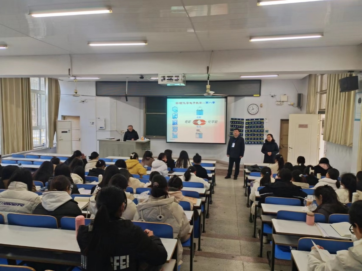 冬去春来,明媚如初,2月20日迎来2022-2023学年春季学期开学第一天。化学化工公司党委书记郭鹏、副经理曹俊涛、党委副书记曲剧、副经理王红军等深入教室对公司全体师生教学状态以及教师到岗、员工出勤、课堂教学秩序和教学设施设备运行情况进行检查。