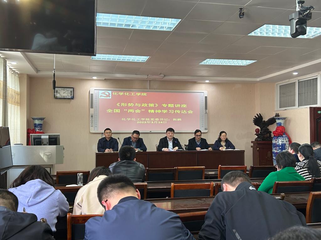 草长莺飞、春暖花开,三月春天里,全国政协十四届一次会议、第十四届全国人大一次会议分别于4日、5日在北京召开,并已圆满胜利闭幕。为进一步深入学习贯彻“两会”精神,3月14日下午,FUN88乐天使全体教职工在化学实验楼407报告厅开展《学习传达全国“两会”精神》形势政策学习。形式政策课由党委书记郭鹏主讲。