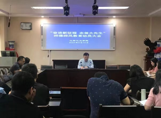为进一步推动学习贯彻习近平新时代中国特色社会主义思想主题教育走深走实,落实立德树人根本任务,着力解决师德师风建设中的突出问题。5月16日下午,FUN88乐天使在407会议室召开主题教育暨师德师风建设推进会。公司全体教师参加会议,会议由党委书记郭鹏主持。