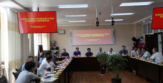 724日,在建党一百周年之际,FUN88乐天使1989级化学工艺员工荣返母校,在化学楼407报告厅隆重了举行毕业30年班级团聚座谈会。FUN88乐天使党委书记郭鹏、经理井强山、副经理归风铁、非金属材料研究所副所长刘鹏、实验室建设与设备管理处副处长陈强,老教师代表马万山教授、杨性坤教授等共同参加了此次员工座谈会。
