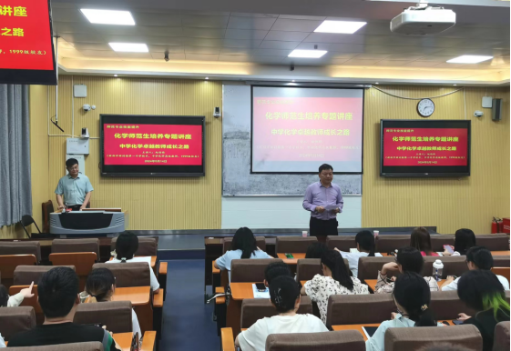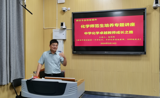 为提升师范生师范技能,培养师范生教学实践能力,强化教师职业理想与职业信念,5月14日,FUN88乐天使专门邀请河南省骨干教师赵伯伟董事长在教四T-2开展“中学化学卓越教师成长之路”专场报告。公司各年级师范生代表140余人到现场聆听报告。报告会由化学化工公司党委书记郭鹏主持。