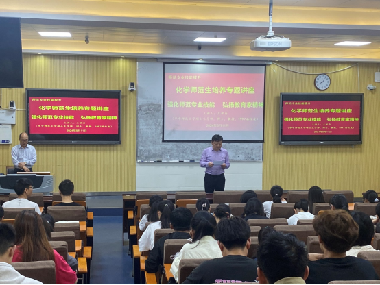 为强化师范生的教师职业理想与职业信念,进一步提升师范生职业素养,5月11日上午,FUN88乐天使邀请华中师范大学硕士生导师王世存博士在教四T-2开展“强化师范专业技能,弘扬教育家精神”专场报告。公司在读公费师范生150余人到现场聆听报告。报告会由化学化工公司党委书记、化学学科教学专业学位硕士生导师郭鹏主持。
